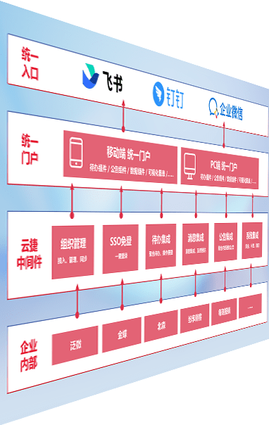 对协作平台提供支持服务,,支持企业应用与协作平台对接,,,,包含组织同步、、、、消息集成、、、、待办集成等。。支持目前主流的协作平台:钉钉、、、、企微和飞书。。